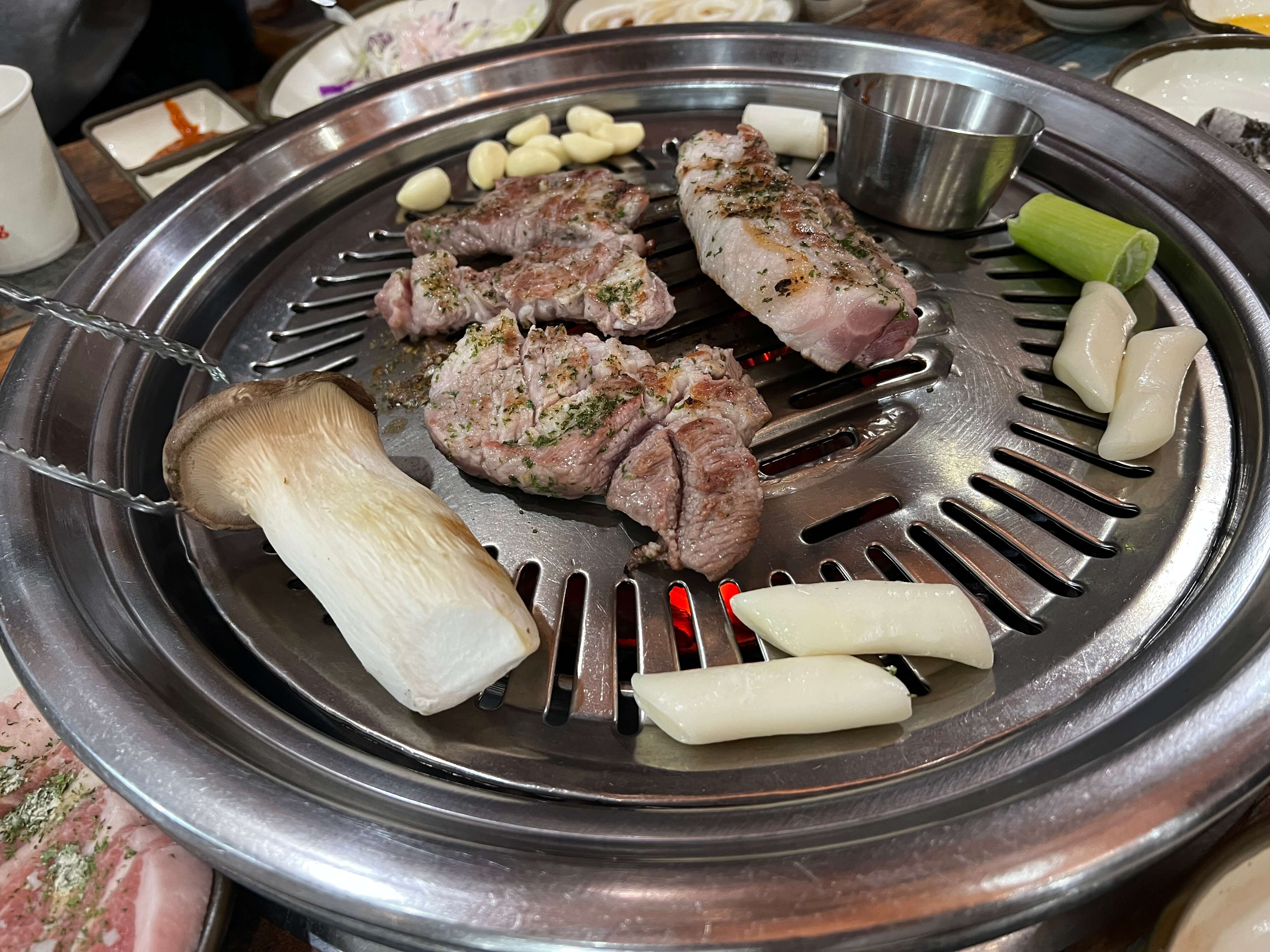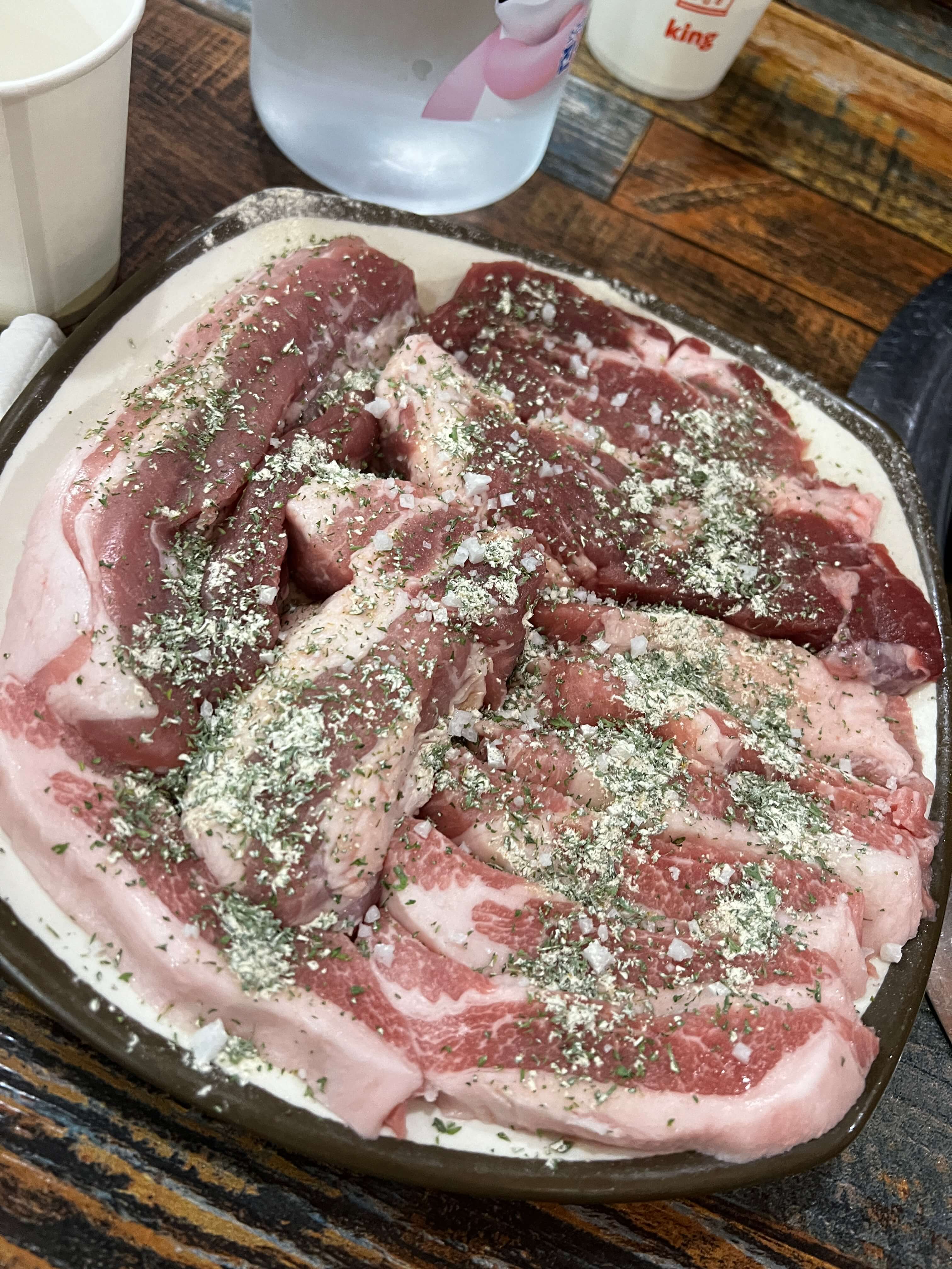 ๊ฐ์กฑ๋ค๊ณผ ํจ๊ป ๊ฐ๋ฉด ๋ ๊ฐ๋นํ์ด๋ ์กํ๋น๋น๋ฐฅ์ ์ฃผ๋ฌธํ์๋๋ฐ ์ด๋ ์ ์์ด๋ค์ด ๊ผญ ๊ณ ๊ธฐ๋ฅผ ์ฏ๋ถ์ ๊ตฌ์๋จน๊ณ ์ถ๋ค๊ณ ํ์ฌ ๋ผ์ง๊ณ ๊ธฐ ๋ชจ๋ฌ์ ์ฃผ๋ฌธํ์ต๋๋ค. 500g์ 34,000์์ด์๋๋ฐ ์ฒ์์๋ ๊ณ ๊ธฐ์ ์์ ๋ณด๊ณ ๋ชจ์๋ผ์ง ์์๊น ์ถ์๋๋ฐ, ๋์ค์ ๊ฐ๋นํ๊ณผ ๋๋ฉด์ ํ๋์ฉ ์ถ๊ฐํด์ ๊ทธ๋ฐ์ง ๋ชจ์๋ผ์ง๋ ์๋๋ผ๊ณ ์.