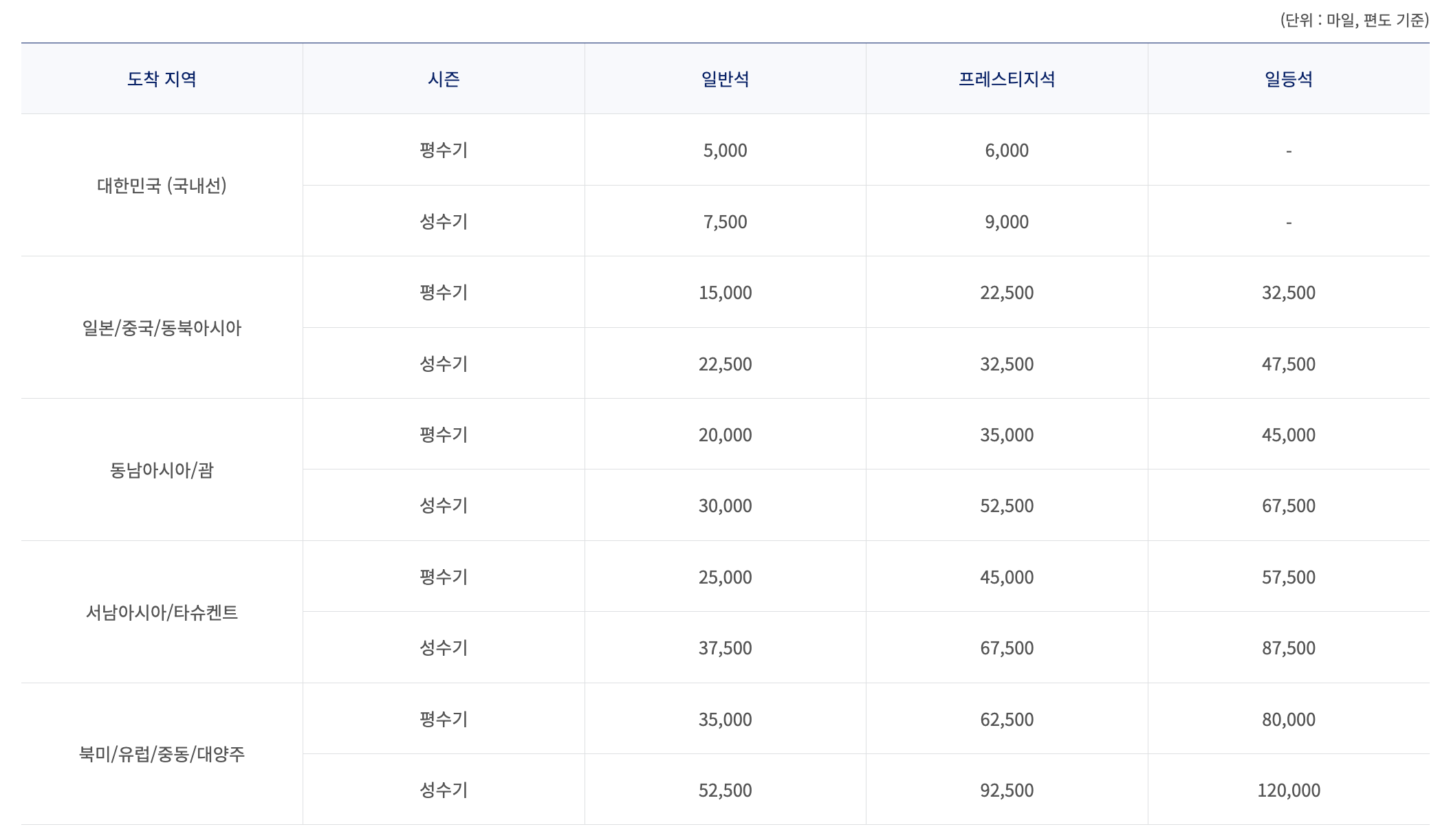 ๋Œ€ํ•œํ•ญ๊ณต ๋งˆ์ผ๋ฆฌ์ง€ ๊ณต์ œํ‘œ | ๋Œ€ํ•œํ•ญ๊ณต ๋งˆ์ผ๋ฆฌ์ง€ ์‚ฌ์šฉํ•˜๊ธฐ
