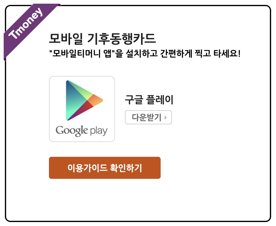 ๋ชจ๋ฐ”์ผ์นด๋“œ์˜ ๊ฒฝ์šฐ ๋ชจ๋ฐ”์ผ ํ‹ฐ๋จธ๋‹ˆ๋ฅผ ๋‹ค์šด๋กœ๋“œ ๋ฐ›์œผ์‹  ํ›„, '๊ธฐํ›„๋™ํ–‰์นด๋“œ'๋ฅผ ๋ฐœ๊ธ‰๋ฐ›์œผ์…”์„œ ์ถฉ์ „ํ•˜์‹œ๋ฉด ๋ฉ๋‹ˆ๋‹ค.