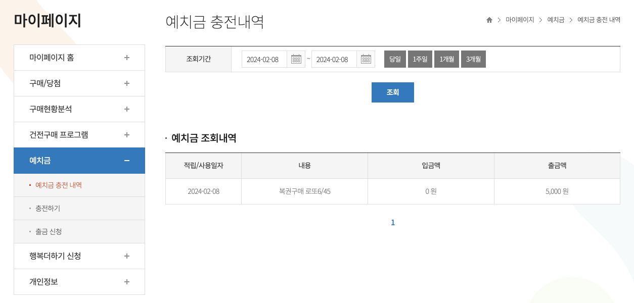 ๋™ํ–‰๋ณต๊ถŒ ํ™ˆํŽ˜์ด์ง€์— ๊ฐ€์‹  ํ›„, ๊ฐ„๋‹จํžˆ ํšŒ์›๊ฐ€์ž…์„ ํ•˜์‹œ๊ณ  ๋‚˜๋ฉด ์˜ˆ์น˜๊ธˆ์„ ์ถฉ์ „ํ•˜์‹ค ์ˆ˜ ์žˆ์Šต๋‹ˆ๋‹ค. ๋งˆ์ดํŽ˜์ด์ง€์— ๊ฐ€์‹œ๋ฉด ์™ผ์ชฝ ํ•˜๋‹จ์— [์˜ˆ์น˜๊ธˆ] ํƒญ์ด ์žˆ์Šต๋‹ˆ๋‹ค. ์˜ˆ์น˜๊ธˆ์„ ํด๋ฆญํ•˜์‹œ๊ณ  [์ถฉ์ „ํ•˜๊ธฐ]๋ฅผ ํด๋ฆญํ•˜์‹œ๋ฉด ์ถฉ์ „ํ•˜์‹ค ์ˆ˜ ์žˆ์Šต๋‹ˆ๋‹ค.