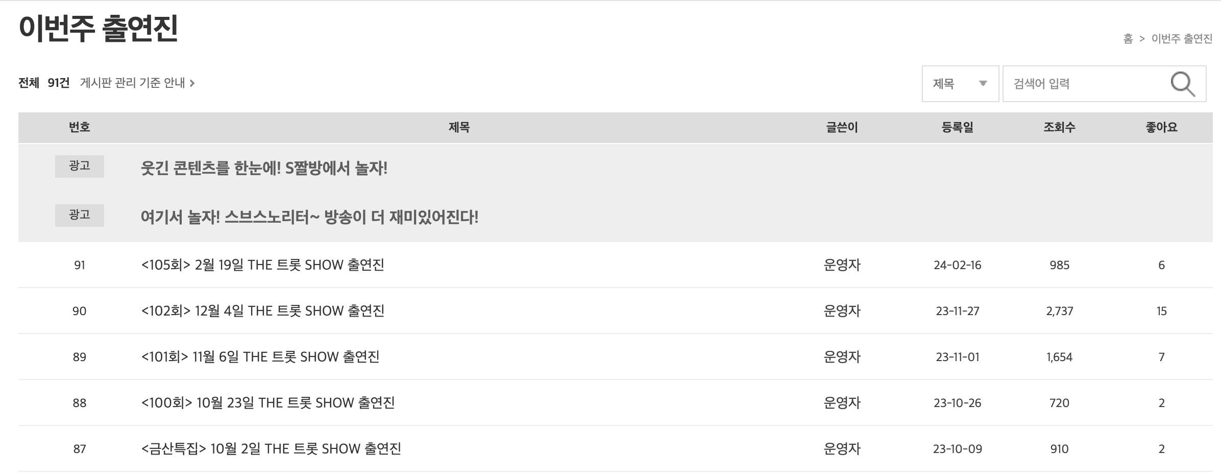 ํ์ฌ ๋ ํธ๋กฏ์ผ๋ ์ฒซ๋ฐฉ์ก์ ๋ฌด์ฌํ ๋ง์ณค๋๋ฐ์. ์ ๊ท๋ฐฉ์ก์ผ๋ก ํธ์ฑ๋์ด ๊ณ์ํ์ฌ ์์ฒญ์๋ค์ด ๋ ํธ๋กฏ์ผ๋ฅผ ์ฆ๊ธฐ์ค ์ ์์ ๊ฒ ๊ฐ์ต๋๋ค.